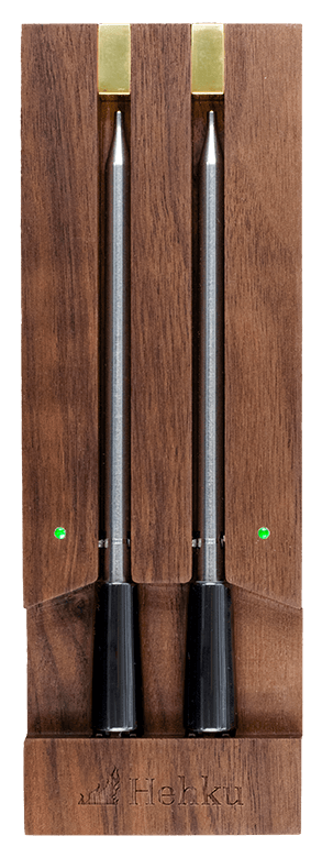 Hehku Duo sisaldab kahte juhtmevaba Bluetooth-lihatermomeetrit, mis aitavad teil saavutada täiusliku küpsusastme lihale, kalale, linnulihale ja ulukile. Seda on mitmekülgne kasutada Gaasigrillidel, Söegrillidel, Ahjudes, Kamado, Suitsutites, Sous Vide, Fritüürides ja palju mujal.